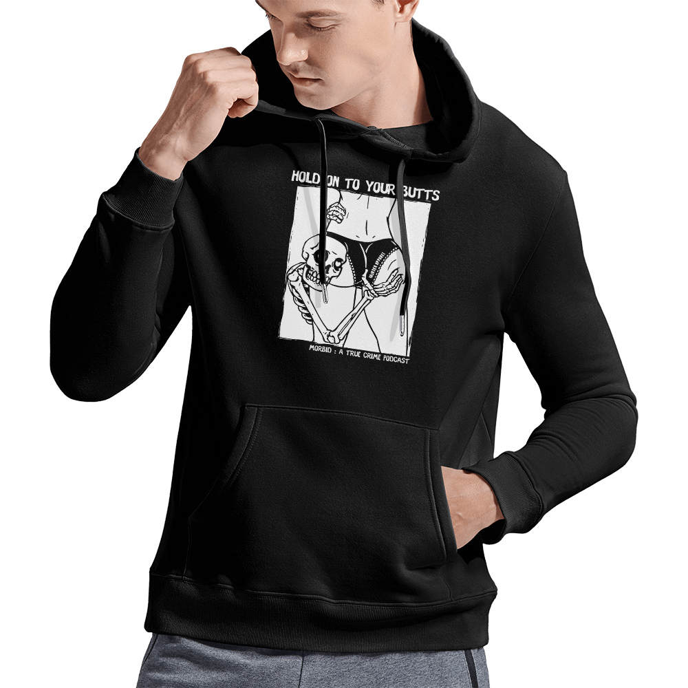 You will never have to wear the same outfit two in a row ever again. The Morbid Podcast Merch Hold On To Your Butts Hoodie is soft, fashionable, and easy to match with any of your other clothes, making it warm and breathable. It is simple - a must-have for everyone!
